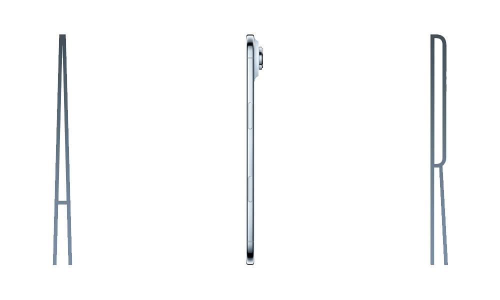 آیفون Air از همان نخستین نگاه، فلسفه طراحی متفاوت اپل را به نمایش میگذارد. باریکی بدنه، که نسبت به دیگر مدلها محسوس است، تجربه کاربری جدیدی را شکل میدهد. دستگاه به خوبی در دست جایمیگیرد و علیرغم داشتن نمایشگر بزرگ، احساس سنگینی یا حجیم بودن را منتقل نمیکند. این باریکی نتیجه مهندسی دقیق در چینش قطعات داخلی و بهینهسازی طراحی فریم است. اپل از تیتانیوم در فریم استفاده کرده که ضمن مقاومت بالا، وزن دستگاه را کنترل میکند. در بخش پشتی نیز پوشش شیشهای مقاوم با بافتی مات انتخاب شده تا علاوه بر زیبایی، مانع از جذب اثر انگشت و لک شود.