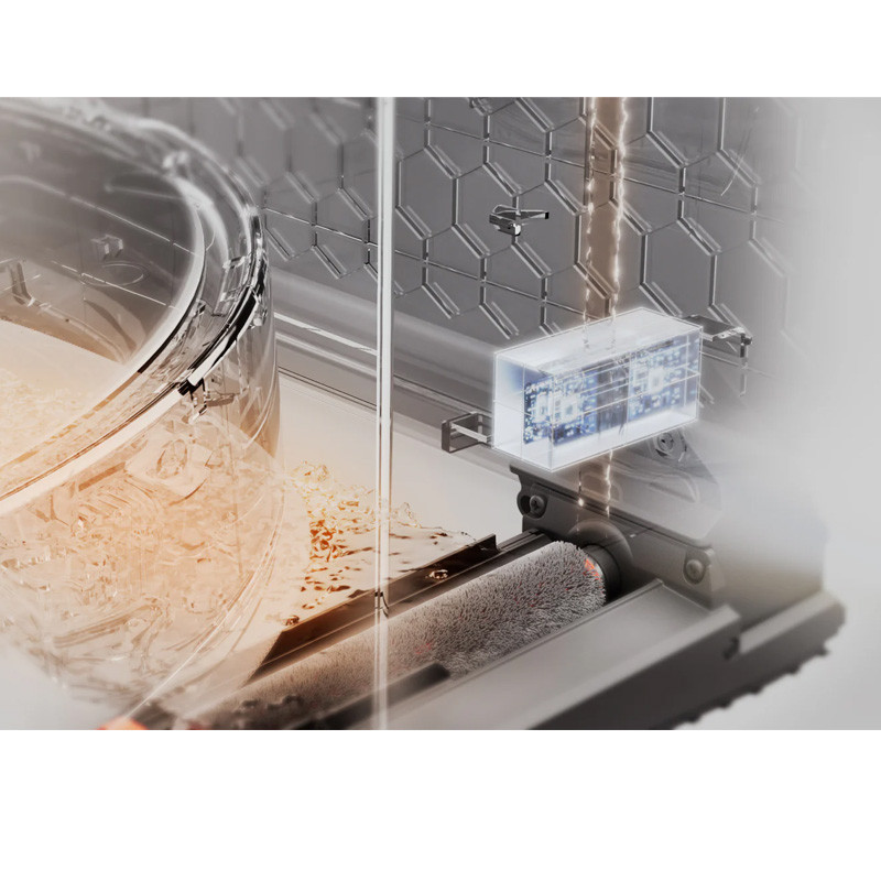 نقطه اوج نوآوری در روبوراک S8 MaxV Ultra، ایستگاه همه کاره و هوشمند آن است. این ایستگاه، فراتر از یک پایه شارژ ساده عمل میکند و به عنوان یک مرکز فرماندهی کامل برای تمامی فرآیندهای نظافتی شناخته میشود. این قابلیتها شامل شارژ خودکار جارو، تخلیه خودکار زباله و شستوشوی خودکار پدهای تی است. گنجایش مخزن زباله پایه شارژ ۲.۵ لیتر، مخزن آب تمیز ۴ لیتر و مخزن آب کثیف ۳.۵ لیتر است که نیاز به دخالت دستی را به شدت کاهش میدهد و به کاربر این امکان را میدهد که برای مدت طولانی از این بابت آسوده باشد. ویژگیهای خود تخلیه شونده و خود خشک شونده نیز نظافت را به یک تجربه کاملاً بدون زحمت تبدیل میکنند و نیاز به دخالت کاربر را به شدت کاهش میدهند. همچنین، امکان اتصال به آب شهری و پر شدن اتوماتیک نیز وجود دارد که فرآیند پر شدن مخزن آب تمیز را به صورت کاملاً خودکار انجام میدهد و کاربر را از هرگونه دخالت بینیاز میکند.