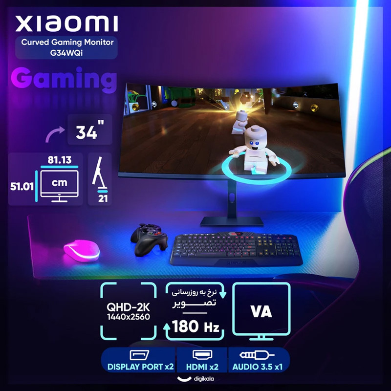 در عصری که فناوری نمایشگرهای OLED و Mini LED در حال فراگیر شدن هستند، قیمت بالای آنها همچنان مانعی برای بسیاری از کاربران محسوب میشود. شیائومی با معرفی مانیتور خمیده گیمینگ G34WQi، راهکاری هوشمندانه و بسیار اقتصادی را برای کاربرانی ارائه میدهد که به دنبال تجربهی فراگیر و لذتبخش یک مانیتور فوق عریض (Ultra-Wide) هستند، بدون آنکه مجبور به پرداخت هزینههای گزاف باشند. این مانیتور ۳۴ اینچی با پنل VA، رزولوشن WQHD، نرخ نوسازی ۱۸۰ هرتز، خمیدگی 1500R و پشتیبانی از رنگهای گسترده، مشخصاتی را ارائه میدهد که معمولاً در مانیتورهایی با قیمت بسیار بالاتر یافت میشوند.