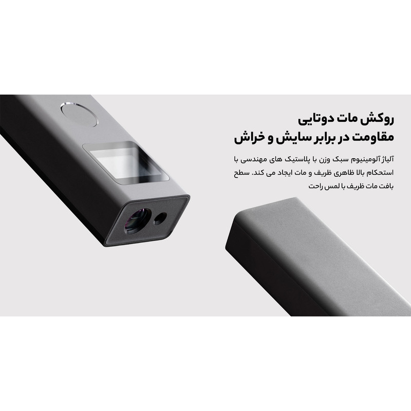 متر لیزری هوشمند شیاومی تنها یک دکمه کنترل دارد که با فشار دادن به مدت 2 ثانیه روشن میشود. با فشار کوتاه، اندازه گیری شروع میشود، در حالی که دوبار کلیک روی دکمه معیارهای جلو و عقب را تغییر میدهد. طراحی تک دکمهای کار با دستگاه را آسان میسازد. بدنه این دستگاه از آلیاژ آلومینیوم سبک وزن و پلاستیکهای مهندسی با استحکام بالا ساخته شده است که نه تنها ظاهری مات دارند بلکه در برابر سایش و خش مقاومتر هستند. پس از یک فشار کوتاه برای راهاندازی، این متر میتواند طول فعلی را در لحظه نمایش دهد. این دستگاه از یک لیزر دقیق و پایدار کلاس II استفاده میکند که میتواند فواصلی به نزدیکی 5 سانتیمتر و به دوری 40 متر را اندازه بگیرد. مراحل پیچیده مجموعه دادههای و انتشار لیزر در یک لحظه به پایان میرسد و دقت دادهها میتواند به ±3 میلیمتر برسد که دقیق و قابل اعتماد است.به علاوه، این دستگاه از عملکردهای متعددی مانند اتصال به گوشیهای همراه و پیوند با برنامه شیاومی برای تحقق بخشیدن به همگام سازی دادهها، محاسبه طول/مساحت/حجم، نقشه برداری و طبقه بندی، به اشتراک گذاری رسم و مشاهده جلوهها پشتیبانی میکند.