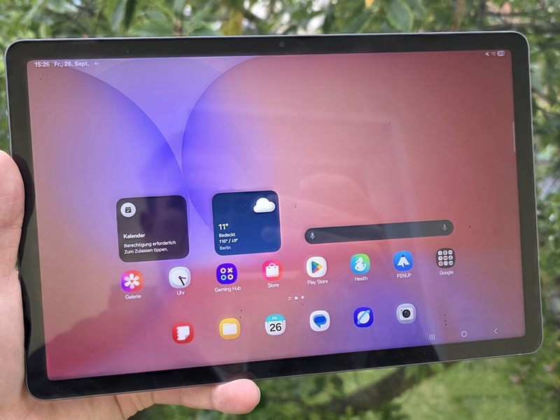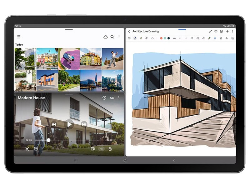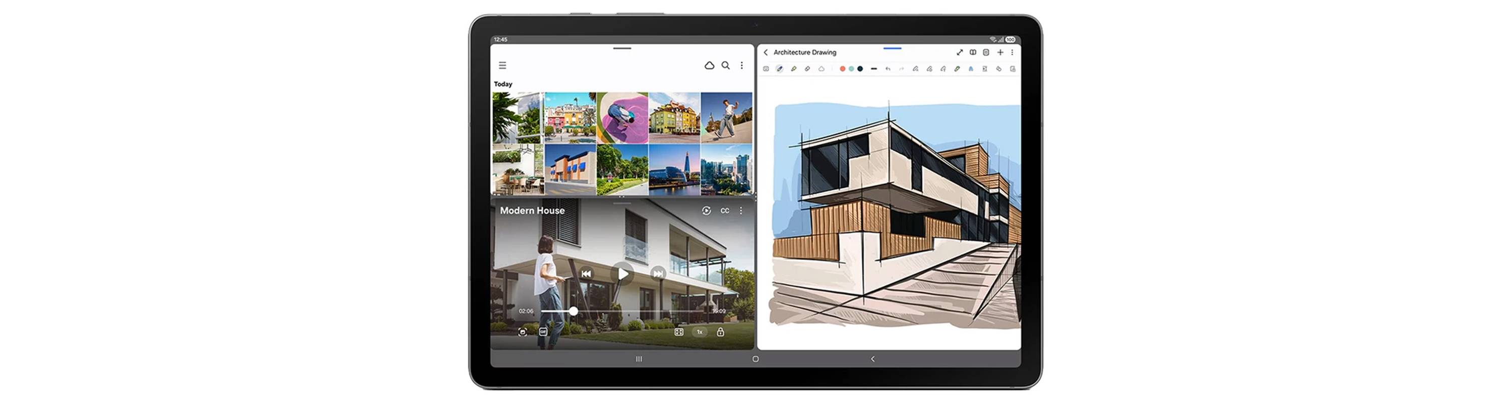 ابعاد دقیق دستگاه 254.3x165.8x6.6 میلیمتر و وزن 524 گرم، نشاندهنده توجه سامسونگ به کاهش وزن و باریکسازی بدنه است؛ بهطوریکه حمل آن در کیف یا دست برای مدت طولانی بدون خستگی انجام میشود. قاب جلو از شیشه مقاوم با پوشش ضدخش طراحی شده، درحالیکه قاب عقب و فریم از آلومینیوم برسخورده ساخته شدهاند تا هم جلوهای لوکس و هم مقاومت فیزیکی را تضمین کنند. نسبت صفحهنمایش به بدنه 81.7 درصد با حاشیههای باریک، حس نزدیکی و تمرکز کامل بر محتوا را ایجاد میکند. نمایشگر ۱۰.۹ اینچی با فناوری TFT و رزولوشن 2112x1320 پیکسل، تراکم 228 پیکسل در هر اینچ را ارائه میکند که برای تماشای فیلم، مطالعه کتاب و طراحی دیجیتال، وضوحی مطلوب دارد. نرخ نوسازی ۹۰ هرتز مهمترین ارتقاء نسبت به نسل قبل محسوب میشود و باعث پیمایش روان، پاسخگویی سریع به لمس و تجربه گرافیکی بهتر میشود. نسبت تصویر 16:10 نیز برای کاربری در حالت افقی یا عمودی، فضای مناسب و متعادل ایجاد کرده است.