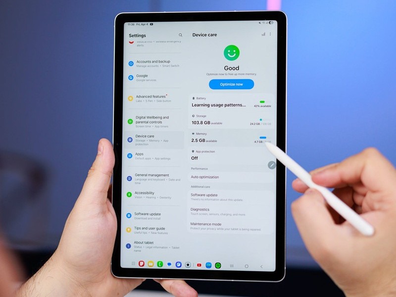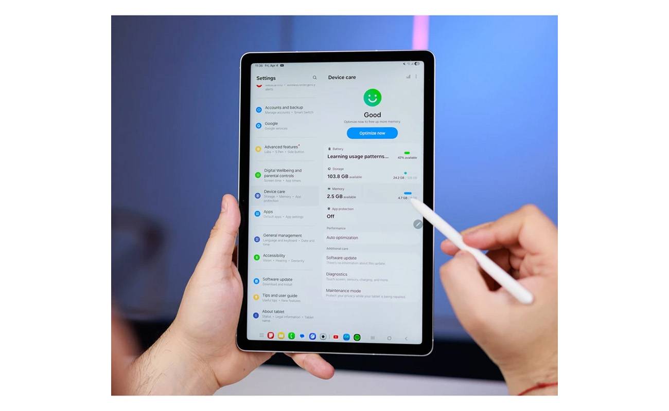 سامسونگ برای Galaxy Tab S10 FE از تراشهی قدرتمند و بهینهی Exynos 1580 با معماری ۴ نانومتری بهره گرفته است. این پردازندهی هشت هستهای، که شامل یک هستهی پرقدرت Cortex-A720 با فرکانس ۲.۹ گیگاهرتز، سه هستهی Cortex-A720 با فرکانس ۲.۶ گیگاهرتز و چهار هستهی کممصرف Cortex-A520 با فرکانس ۱.۹ گیگاهرتز میشود، در کنار پردازندهی گرافیکی Xclipse 540، عملکردی بسیار روان و سریع را در اجرای انواع برنامهها، از کارهای روزمره و چندوظیفگی گرفته تا نرمافزارهای خلاقانه و بازیهای گرافیکی، تضمین میکند. این تبلت با ۸ و 12 گیگابایت حافظهی رم عرضه میشود که برای اجرای همزمان چندین برنامه و جابجایی سریع بین آنها کاملا کافی است. حافظهی داخلی ۱۲۸ یا 256 گیگابایتی هم فضای مناسبی را برای ذخیرهسازی فایلها، برنامهها و بازیها فراهم میکند. اما یکی از بزرگترین مزایای Tab S10 FE، پشتیبانی از کارت حافظهی microSDXC با ظرفیت حداکثر تا دو ترابایت است. این قابلیت، نگرانی کاربران را در مورد کمبود فضای ذخیرهسازی به طور کامل از بین میبرد و انعطافپذیری فوقالعادهای را برای مدیریت فایلها فراهم میکند.