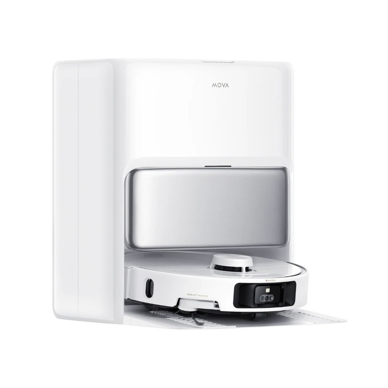 جاروبرقی رباتیک MOVA P50 Pro Ultra با قدرت مکش ۱۹۰۰۰ پاسکال، تمیزکاری دقیق لبهبهلبه، تشخیص آلودگی و موانع، جداسازی خودکار پد تی برای محافظت از فرش، داک هوشمند با نگهداری خودکار و استراتژیهای انعطافپذیر نظافت طراحی شده است. قدرت مکش ۱۹۰۰۰ پاسکال امکان جمعآوری کامل گردوغبار، موی حیوانات خانگی و انواع زبالههای ریز و درشت را فراهم میکند. این قدرت بالا باعث میشود تمیزکاری در امتداد دیوارها، کناره قرنیزها و زیر مبلمان کمارتفاع نیز بهطور کامل انجام شود. فناوری FlexRech با برس جانبی و پد تی کشویی، امکان دسترسی دقیق به گوشههای ، فضاهای باریک و اطراف پایه میز و صندلی را فراهم میکند، بدون نیاز به جابهجایی وسایل. برس اصلی و برس جانبی ضدگیرکردن مو با فناوری CleanChop از پیچیدن مو به برسها جلوگیری میکنند و نیاز به تمیزکاری دستی را به حداقل میرسانند. برای محافظت از فرشها، دستگاه بهصورت هوشمند پد تی را جدا یا بالا میبرد تا فرشها خشک و سالم باقی بمانند. در فرشهای کمپرز، پدهای تی و برس جانبی بالا میروند و برس جانبی تا ۱۰ میلیمتر بالا میآید تا از خیس شدن فرش جلوگیری شود. در مواجهه با مایعات، برسها و پدهای تی بالا میروند تا از گیرکردن دستگاه، پخش آلودگی و ایجاد بوی نامطبوع جلوگیری شود. داک همهکاره، نگهداری دستگاه را کاملاً خودکار میکند. تخلیه خودکار گردوغبار، شستوشوی پدها با آب ۷۵ درجه، خشککردن با هوای گرم، تمیزکاری خودکار سینی شستوشو، افزودن خودکار محلول شوینده و پر کردن خودکار آب از جمله قابلیتهای این داک هستند. سیستم ناوبری پیشرفته با ایجاد نقشههای سهبعدی چندسطحی، مسیر حرکت بهینه را پیش از هر بار نظافت برنامهریزی میکند و از برخورد با اشیایی مانند کفش، لباس یا میز جلوگیری میکند. چراغ LED قدرتمند امکان تمیزکاری دقیق در فضاهای کمنور و تاریک را فراهم میسازد. دستگاه میتواند از موانعی تا ارتفاع ۲۲ میلیمتر عبور کند و برای انواع چیدمانهای خانگی مناسب است. در اپلیکیشن، هر اتاق بهصورت جداگانه قابل تنظیم است و نوع کف، شدت مکش و میزان رطوبت متناسب با آن فضا انتخاب میشود. برای خانههای دارای حیوان خانگی، امکان تعریف مناطق مخصوص نظافت و افزایش قدرت برای جمعآوری ذرات درشت مانند خاک گربه وجود دارد.