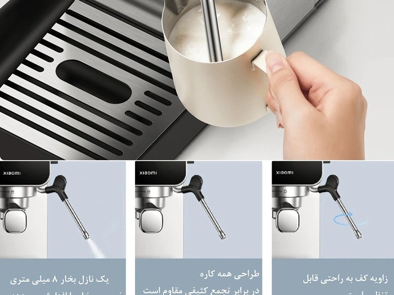 اسپرسوساز شیائومی مدل CME003EU یک دستگاه نیمهاتوماتیک قدرتمند با طراحی مدرن و بدنه استیل است که برای علاقهمندان به قهوه با کیفیت کافهای طراحی شده است. این دستگاه با پمپ فشار 20 بار، توان 1350 وات، سیستم پیشخیساندن (Pre-infusion) و نازل بخار حرفهای، ا
