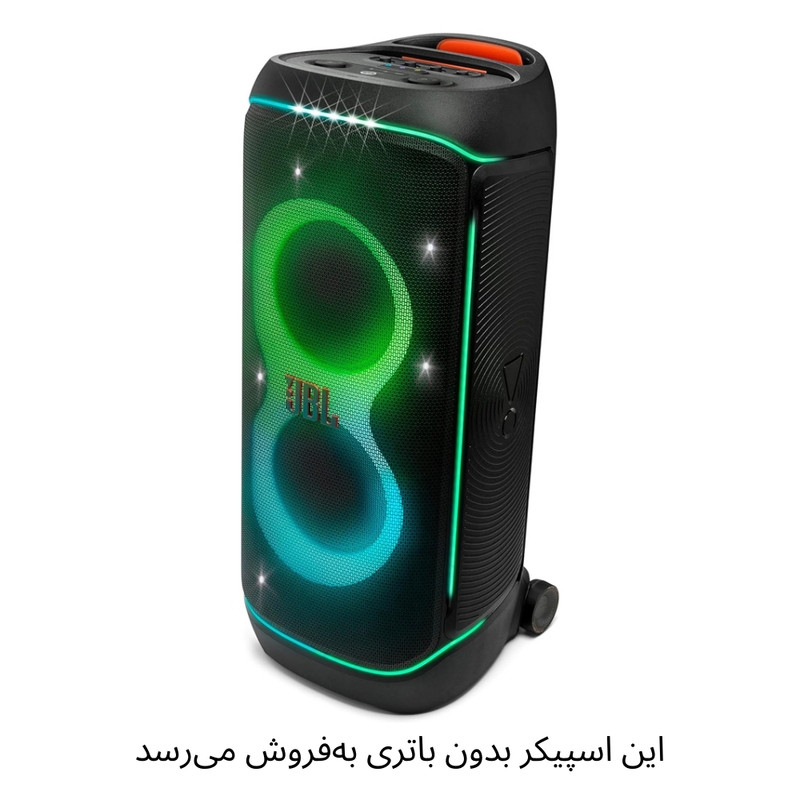 | سایر توضیحات | (این اسپیکر بدون باتری بهفروش میرسد) - نورپردازی دینامیک و هماهنگ با ریتم موسیقی - قابلیت اتصال چند اسپیکر با Auracast (اتصال استریو یا پارتی مود)، قابلیت پاوربانک (شارژ دستگاههای دیگر) - USB-C (ورودی/خروجی)، ۲ ورودی XLR (میکروفون یا گیتار/ساز)، ورودی AUX (۳.۵ میلیمتری)، خروجی AUX (برای اتصال اسپیکر دوم) - JBL Pro Sound، AI Sound Boost، دکمه Bass Boost، کنترلهای اکولایزر برای میکروفونپشتیبانی از فرمتهای صوتی .MP3، .WAV، .FLAC، قابلیت تنظیم جلوههای نورپردازی با اپلیکیشن JBL PartyBox App - دارای دو عدد ساب ووفر 9 اینچی و 2 عدد توییتر |